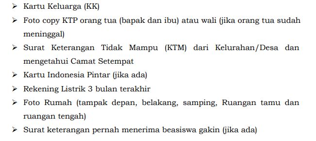 - Bagi yang mengusulkan beasiswa berasal dari keluarga tidak mampu secara